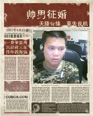 | 内心独白: | | 我想要个健康平凡的,会炒番茄鸡蛋的,会操作洗衣机的,脸上可能还有点小雀斑的,见到生人会脸红的,知道酱油多少钱一瓶的,在我把大米扛回家时会帮我擦擦汗的那么一个姑娘。 | |
